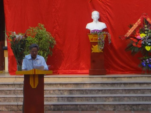 Ông Nguyễn Mạnh Hùng – Bí thư đảng ủy xã Thượng Lâm thay mặt các đại biểu đọc thư của Chủ tịch nước chúc mừng các thầy cô giáo và các em học sinh nhân ngày khai trường.