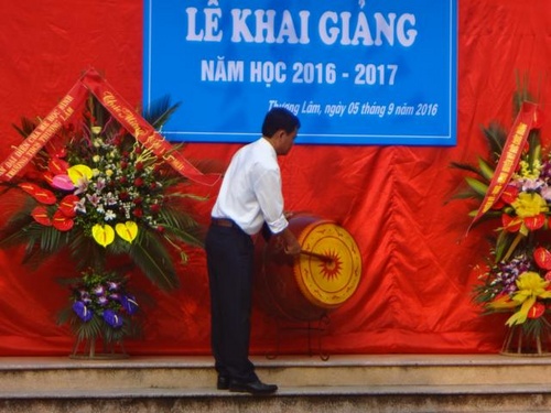 Thầy Trần Văn Thuần - HT nhà trường thay mặt cán bộ, giáo viên, nhân viên nhà trường đọc diễn văn khai giảng năm học 2016 – 2017 và đánh trống khai trường.