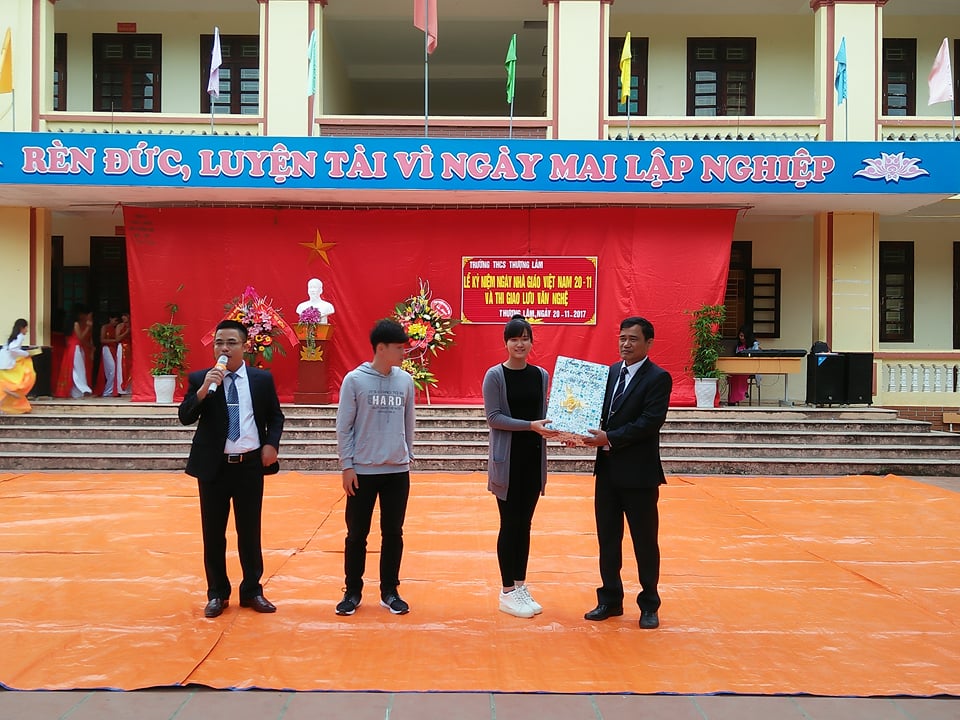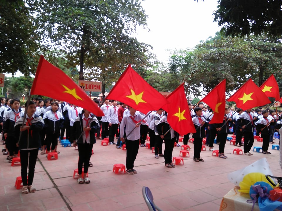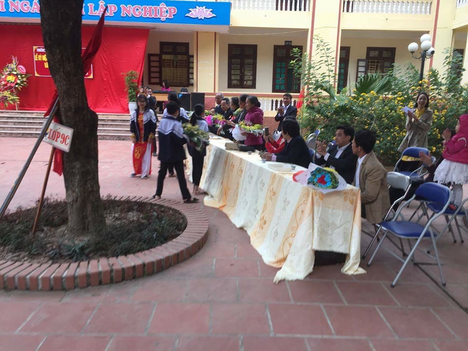 7h sáng ngày 20/11 trên sân trường tràn ngập sắc hoa, những lá cờ đỏ tung bay phấp phới, buổi lễ meeting đã long trọng diễn ra.