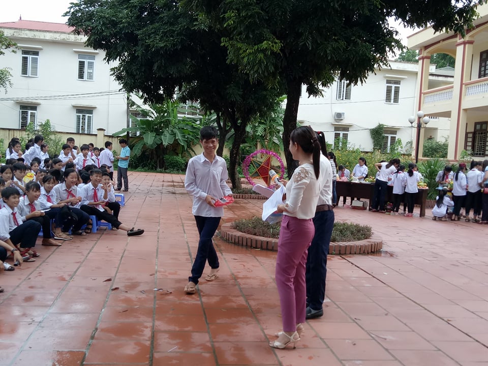 Đầu tiên là hình ảnh thầy Nguyễn Văn Chung- Phó hiệu trưởng nhà trường lên đọc thư của chủ tịch nước gửi tới các em đội viên ngày tết trung thu.