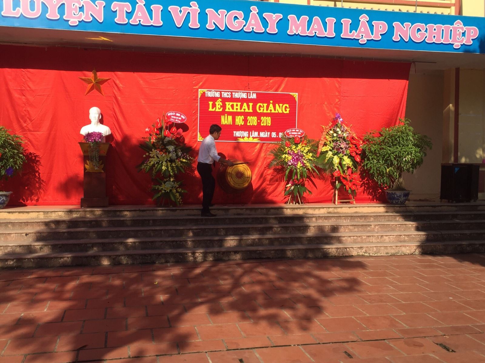Thầy Trần Văn Thuần – Bí thư chi bộ ,Hiệu trưởng nhà trường lên đọc diễn văn khai giảng năm học 2018 - 2019 và đánh tiếng trống khai trường. Và bế mạc phần lễ.